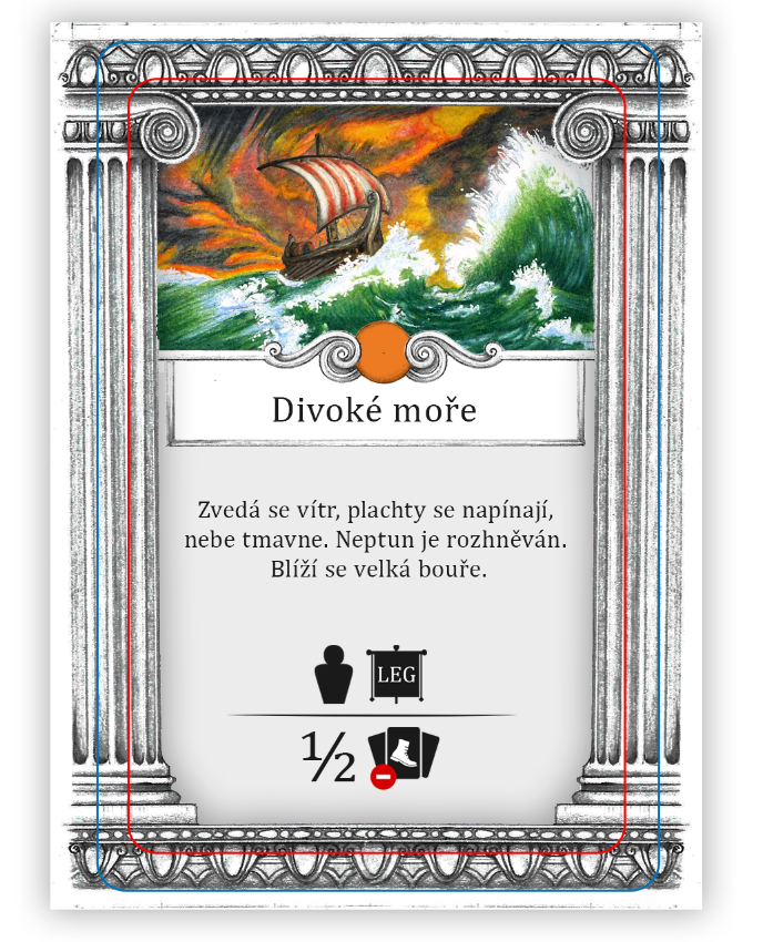 Do třetice všeho dobrého, říká se. Nám ale ani třetí možnost nestačila. Těsně před realizací dalších ilustrací karet jsme se rozhodli vytvořit i nový lem karty, který by více odpovídal danému stylu. Jedná se o poctivou ruční kresbu, náhledy níže jsou hotové z 95% (chybí vyhlazení vnitřních hran).